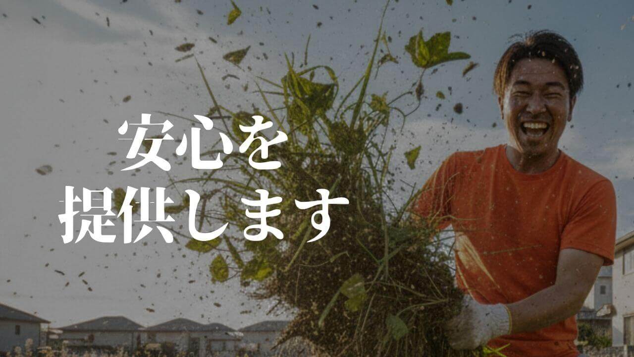 作業量が多く、草取りを諦めてしまった方も大歓迎。長年放置していて、自分では手に負えない状態になってしまった場合でも、ぜひご相談ください。
